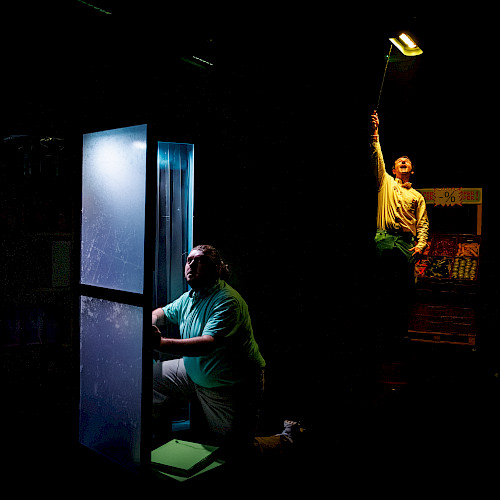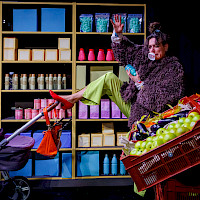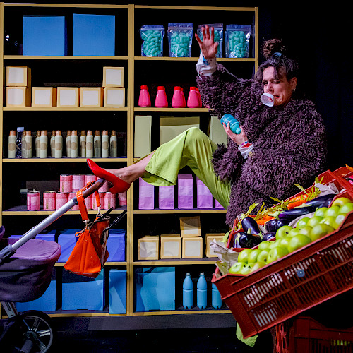 Met weinig tekst, veel slapstick en filmische effecten laat Totale Uitverkoop je de gekte van onze doorgedraaide kooplust voelen. Deze absurde voorstelling laat je griezelen en lachen tegelijk.